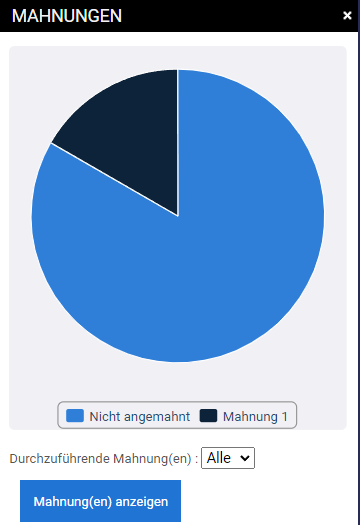 Im Mahnungen Widget werden Ihre Mahnungen dargestellt im Form eines Kreisdiagramms.