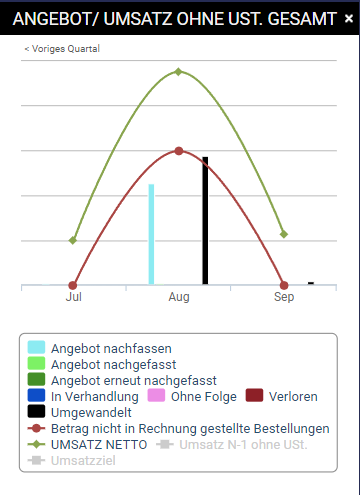 Das Widget "Angebot / Umsatz ohne USt. Gesamt" umfasst und bildet jedes Angebot ab, es zeigt zusätzlich auch den aktuellen Status an.