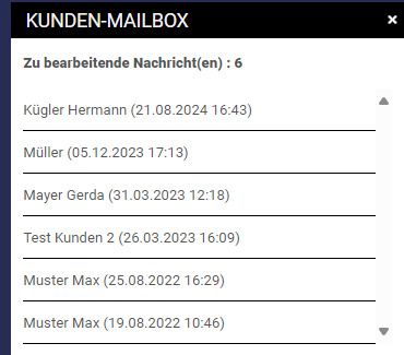 Das Kunden-Mailbox Widget zeigt Ihnen jegliche Konversationen und Nachrichten die im Zusammenhang mit einem Kunden entstanden sind.