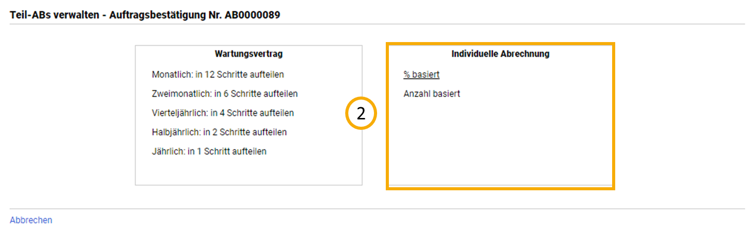 Definieren Sie anschließend "% basiert" als Abschlagstyp (2).