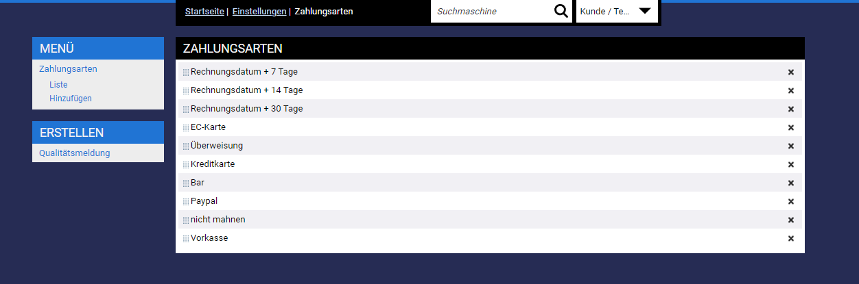 Ihre Zahlungsarten können in den Einstellungen verwaltet werden:
