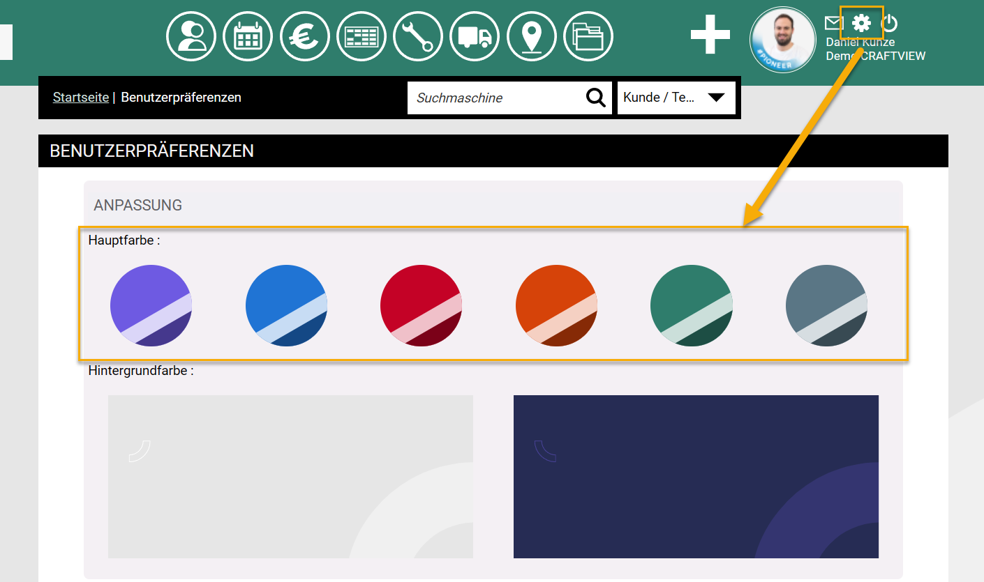 Klicken Sie dazu auf das Zahnrad rechts neben Ihrem Avatar und wählen Sie Ihre bevorzugte Hauptfarbe.