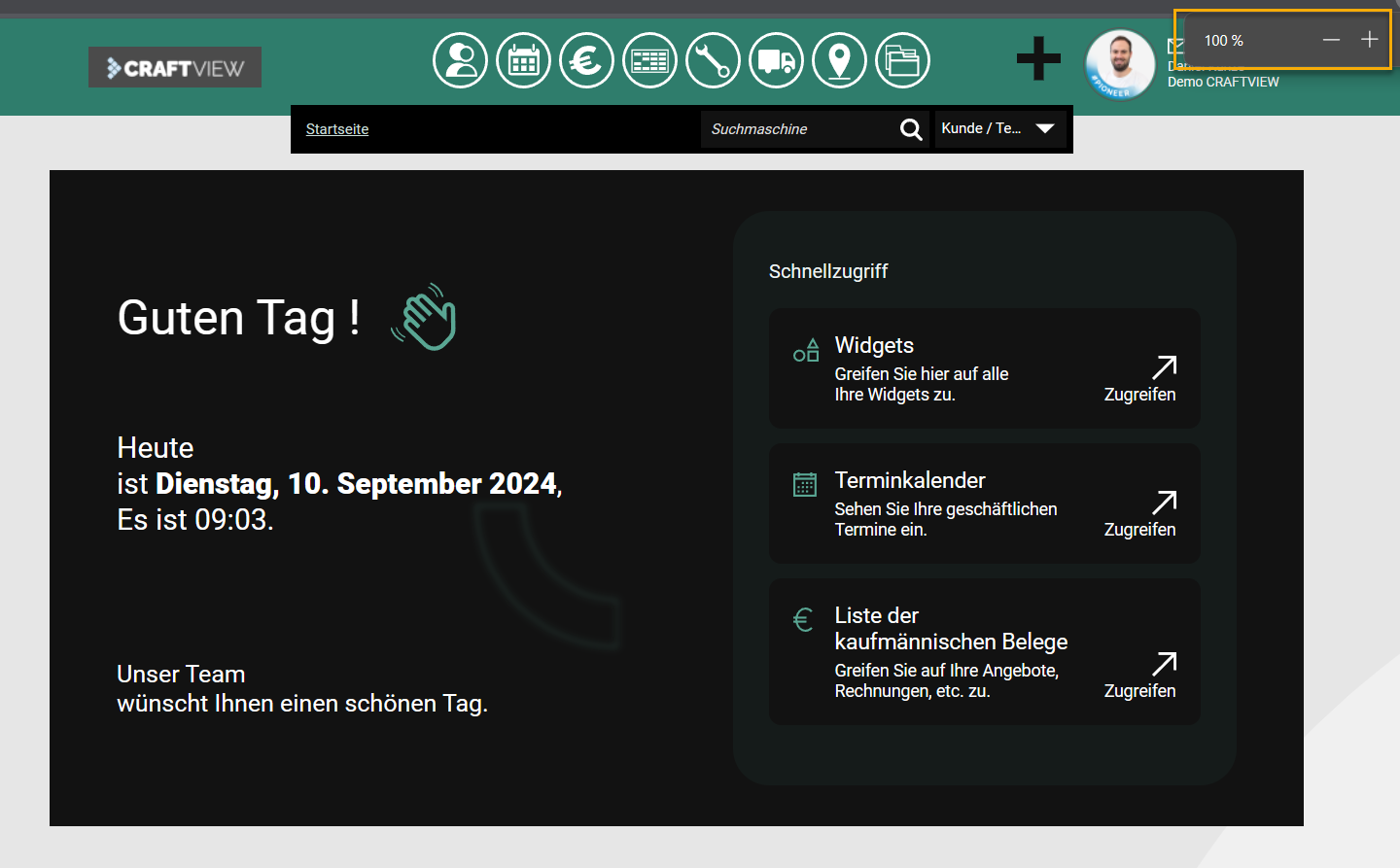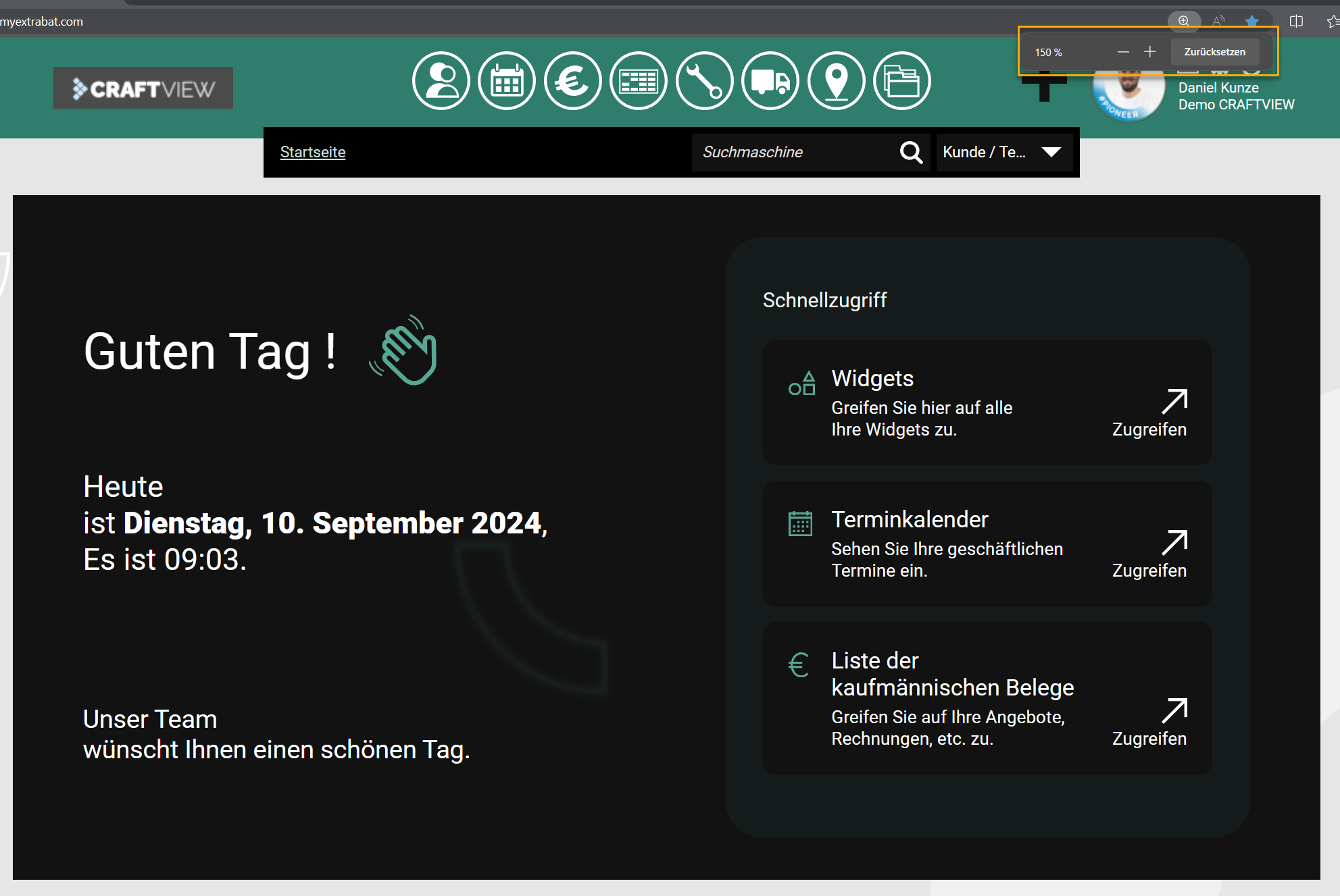 - Strg + Pluszeichen (+): Zoomt die Seite heran.