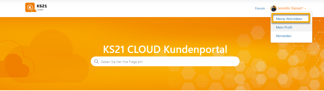 Öffnen Sie hierfür das Kundenportal im oberen, rechten Bereich auf Ihren Namen und wählen Sie dort "Meine Aktivitäten" aus.