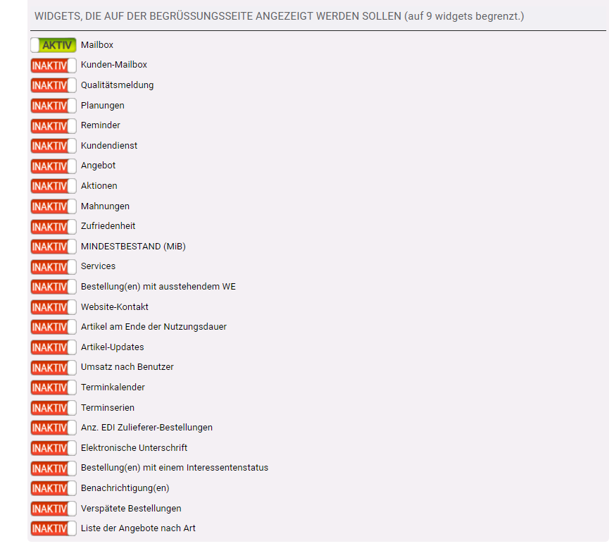 Wenn Sie über diesen Weg gehen, erreichen Sie den Abschnitt der Einstellungen der zu Widgets gehört automatisch, dort können Sie sich aussuchen welche Aktiv und Inaktiv sind und angezeigt werden unter "Widgets":