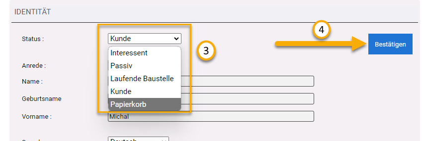 Was jedoch möglich ist, ist den Status auf "Papierkorb" umzustellen, somit verschwindet er aus der direkten Suche und wird nicht mehr angezeigt.