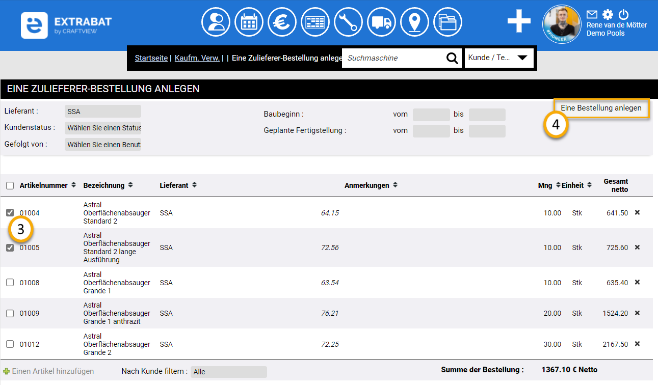 Sie können dort nun die gewünschten Artikel auswählen und eine Bestellung generieren.