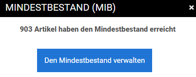 Das Widget MINDESTBESTAND (MIB) zeigt Ihnen an wie viele Artikel den Mindestbestand erreicht haben.
