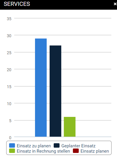 Das Widget Services zeigt Ihnen als Säulendiagramm alle Serviceeinsätze nach jeweiligen Status an.
