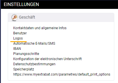 Möchten Sie Ihre Logos einsehen oder neu hinterlegen, können Sie dies in den Einstellungen tun. Sie gelangen dort wie folgt hin: